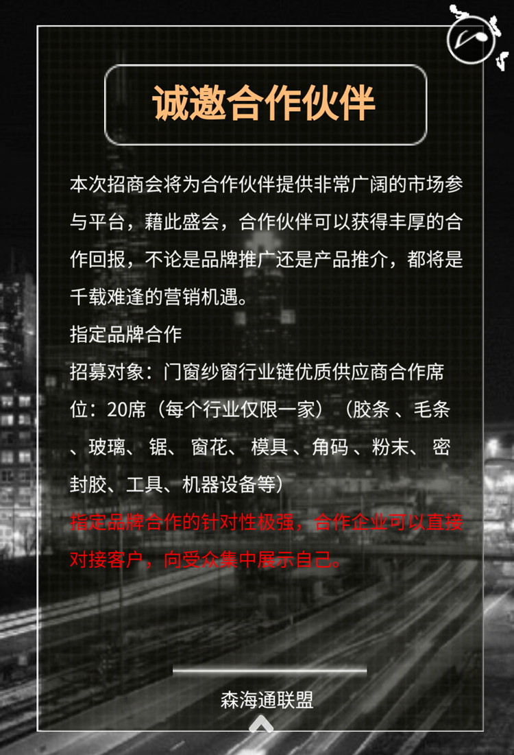 邀請函|“共商 共享 共贏”--2018森海通紗窗行業聯盟邀您共赴盛
