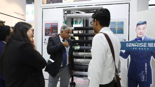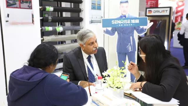 來自世界各國的外國友人與旭森工作人員熱情交談,對旭森產品十分滿意。